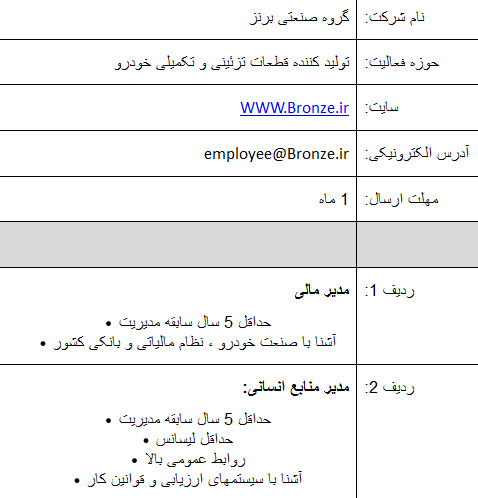 استخدام گروه صنعتی برنزاستخدام گروه صنعتی برنز |
